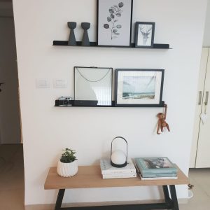 יחידת מטבח תלויה פרופיל ברזל 20/20 צבוע שחור מט, חלוקה ל3 כאשר צד ימיני פרופיל חלול עם 3 מדפי עץ אלון מלא 1 צול. ושני חלקים נוספים זוג דלתות זכוכית. פתיחה דלתות במשיכה מלמטה. ניתן להזמין בכל שינוי ובכל מידה בטלפון 0506991115