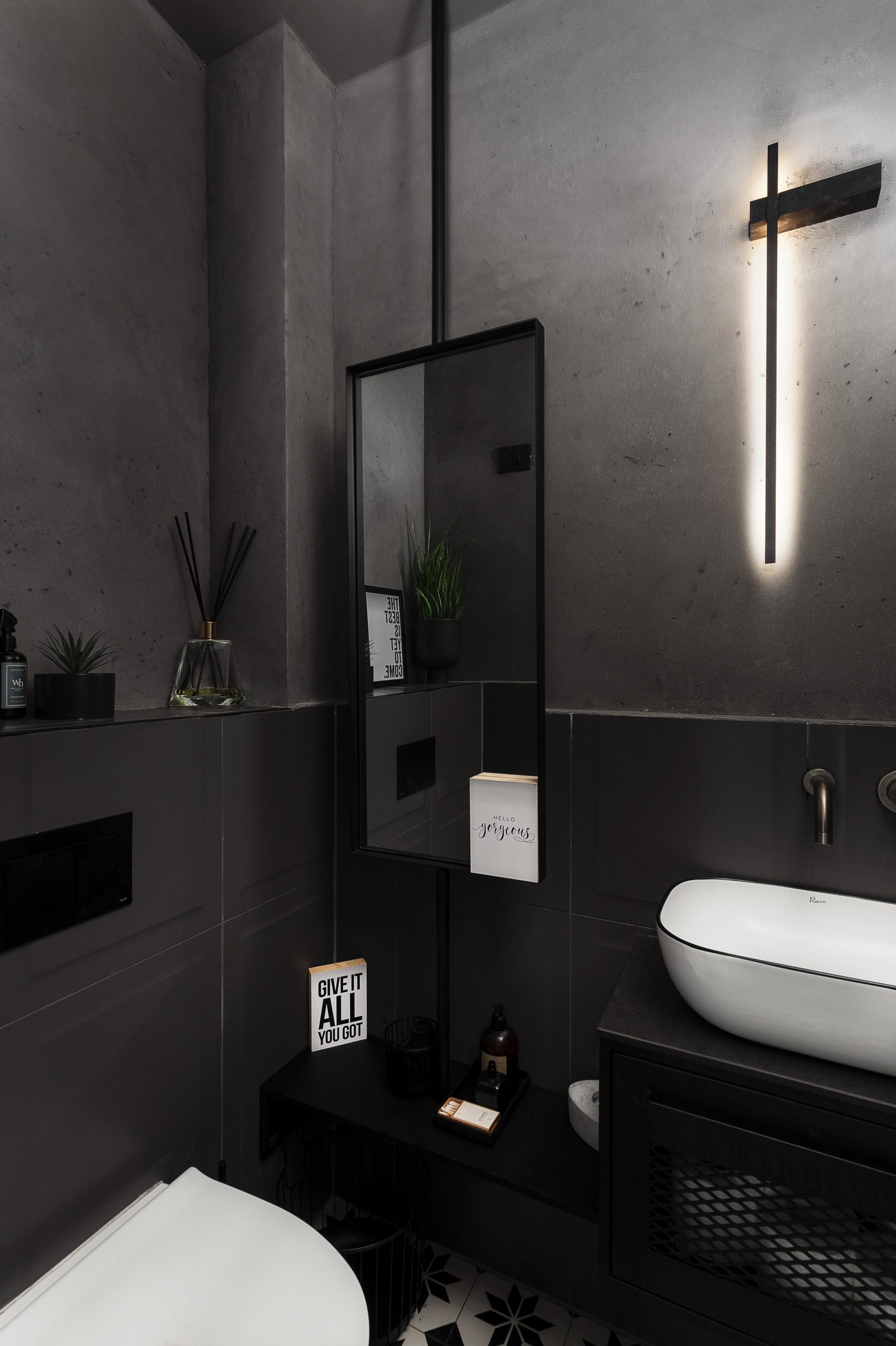 מראה תלויה על מוט בעיצוב מינימליסטי ונקי, המשלבת פונקציונליות עם נוכחות אדריכלית מרשימה. המסגרת השחורה הדקה והמוט האנכי מאפשרים תלייה אלגנטית מהתקרה או מהקיר, ליצירת מראה מודרני וקליל בחלל. מושלמת לחדרי רחצה, מבואות וחללים בעיצוב תעשייתי או עכשווי.